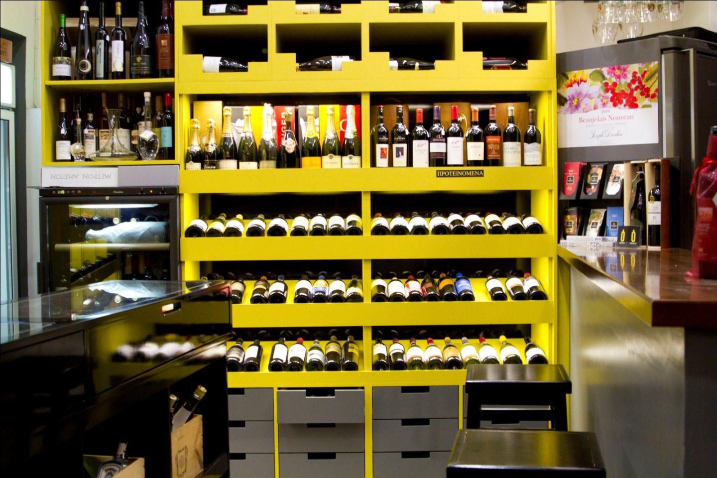 As a recovering Englishman I have a complicated relationship with a pun. (And before anyone thanks me for sharing, I’m recovering from Brexit Britain rather than the more traditional poisons, as will become apparent). We are taught from the cradle that puns are the lowest form of wit but that sentiment has always had the ring of the schoolyard infatuation for me; we love them really but just feel weird about it. However when it comes to puns and shops, things get awkward quickly, as demonstrated by a genre of UK hairdresser. (I’m looking at you, Barber Streisand.) So it was with a cocked ear that I first heard about Oinoscent in Syntagma Plaka.