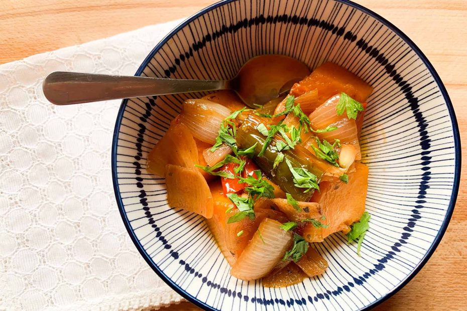 While I love the traditional and modern desserts made with fresh pumpkin, my heart belongs to all the wonderful savoury Greek recipes that call for pumpkin and winter squash. Most people don’t think of winter squash and pumpkin as popular ingredients in Greek cooking, but they are and have been long enough to have evolved into some of the best regional Greek recipes around. In Ikaria, for example, our classic summer vegetable casserole, SOUFICO, puts on a winter look with pumpkin and red peppers. It’s easy, quick, healthy and perfect for vegans at your Thanksgiving table.