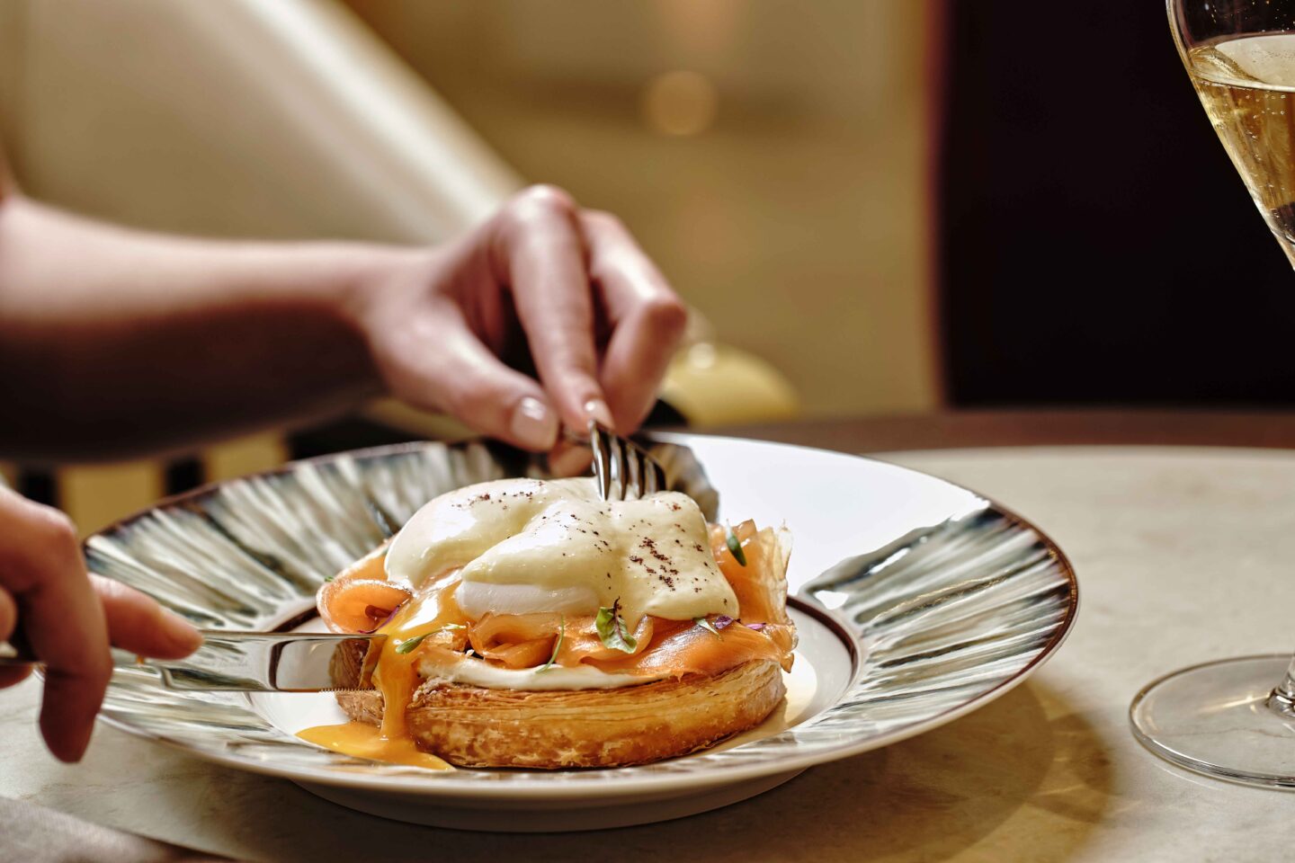 Then there’s the show-stopper: the trolley viennoiserie. A roving cart of warm, handcrafted pastries, sweet and savoury, gliding past tables like a parade of temptation. Paired with single-origin espresso, seasonal infusions, and botanical blends, breakfast here is a morning ritual you’ll want to repeat.