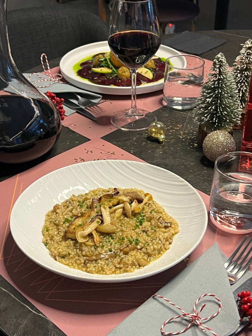 Winter Trahanotto: Trahana wheat “pellets” (a Greek heritage ingredient) with winter mushrooms for extra comfort and deep flavour.