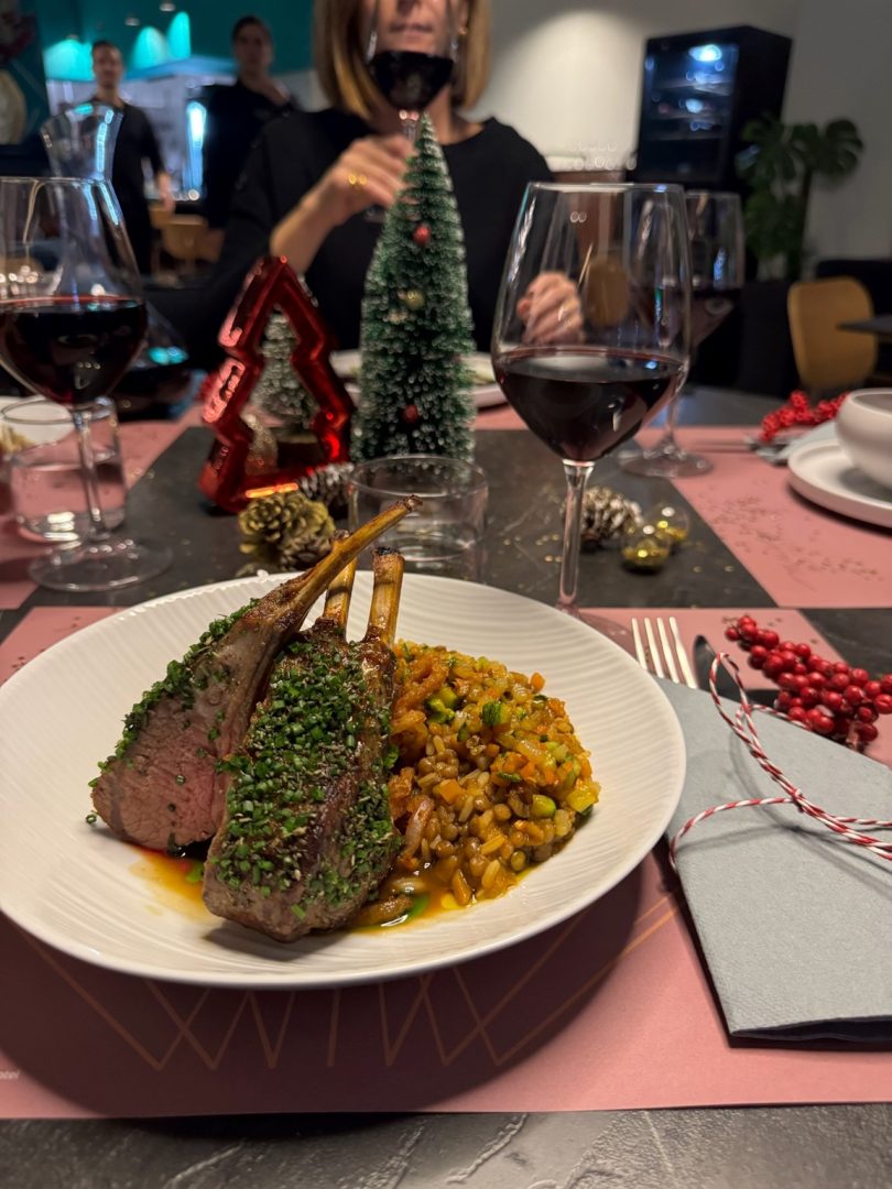 Lamb Chops with Fakorizo: Premium Greek meat paired with another traditional classic made of lentil and rice pilaf, and winter root vegetables offers richness and tradition.