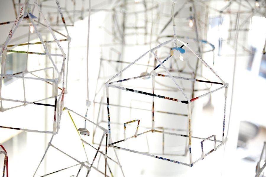 - As you walk into ShediaHome, the first thing that strikes you are the airy home mobiles dangling from the ceiling. Made of papier-mache and metal wire-frames, each of these homes represents a real one found for a homeless person, a collective victory.