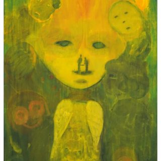 This work isn’t created out of whole cloth, there is a dark, Eastern European fairy tale quality to it, some pieces stand in the long shadows of James Ensor, Odilon Redon, and Chagall—others spin out into the frenetic energy of Jean Dubuffet—and carry the same Art Brut break from tradition in form and content; Oil paint applied as a wash that bleeds, subjects that reflect a studied innocence. Some of the paintings were made in Georgiou’s studio in Bushwick, New York and these are darker and denser.