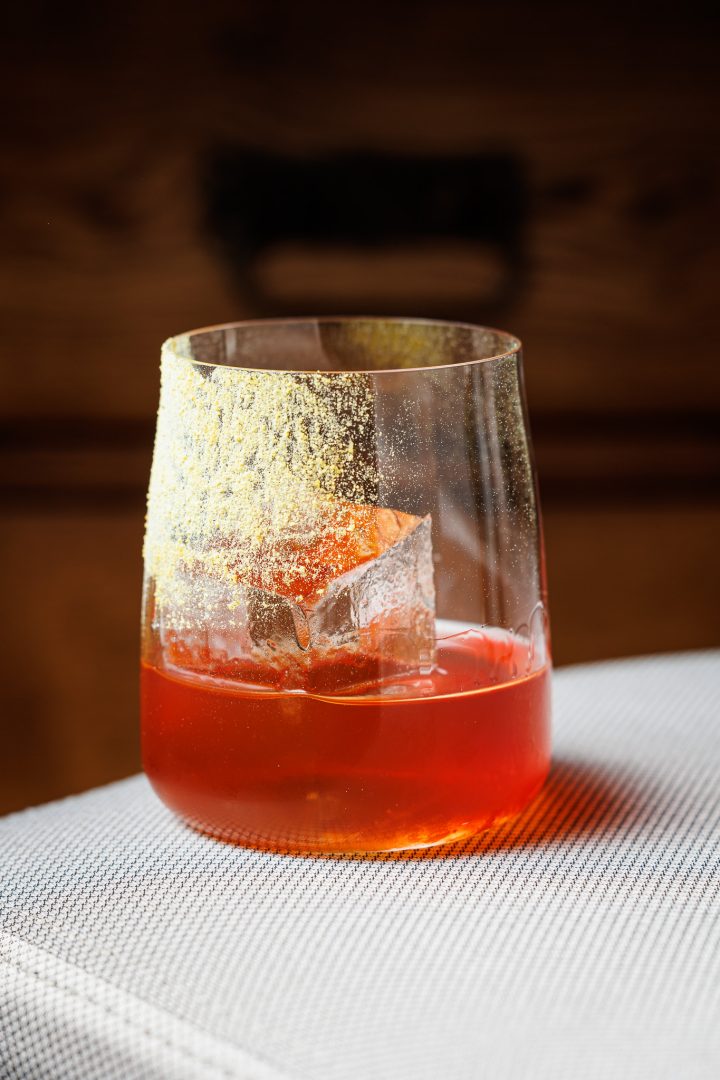 Firstly, the cocktails are excellent, with a familiar list of the classics turning out to be a thoughtful and purposeful set of innovations instead. They have leaned into the sweetness that is fundamental to a good old fashioned with the addition of a salted caramel flavour and a butter washed whiskey. It tasted like the unholy offspring of Ollie Read and Werther’s Original and that is high praise indeed. The daiquiri had an elegant slick of peridot-coloured fig leaf oil that gave the drink a pleasingly grown-up vegetal note. The margarita, the closest of the cocktails I tried to the original, still came with an edible flower and a dried crisp of bell pepper which sounds odd to the page but made lots of sense in the glass. I didn’t try the pornstar martini which Giannos claimed was their signature cocktail because I was a young adult in London in the late 90s and the very words give me spine tingling flashbacks. I’ll go back and try it next time after I’ve worked out some issues with my therapist.
